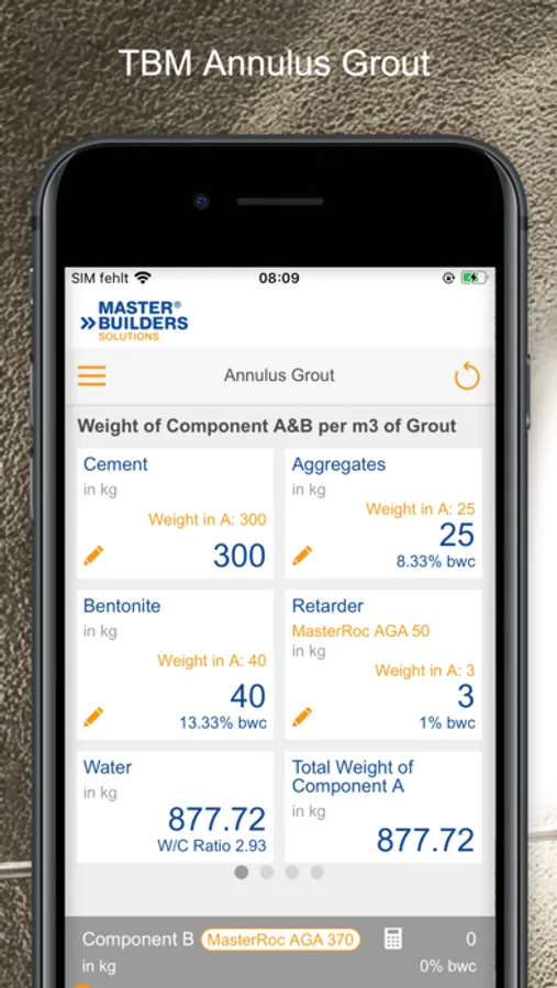 The TBM Annulus Grout App calculates the weight and volume of components A and B per cubic meter of grout, as well as retarders and water required. Additionally, the App calculates laboratory scale volumes required for lab or site trials.