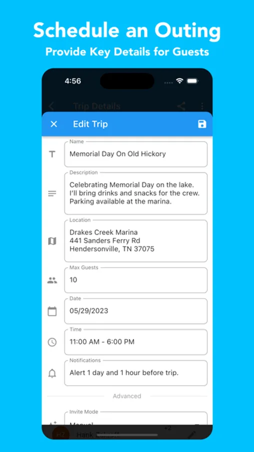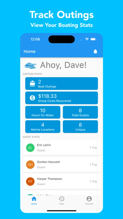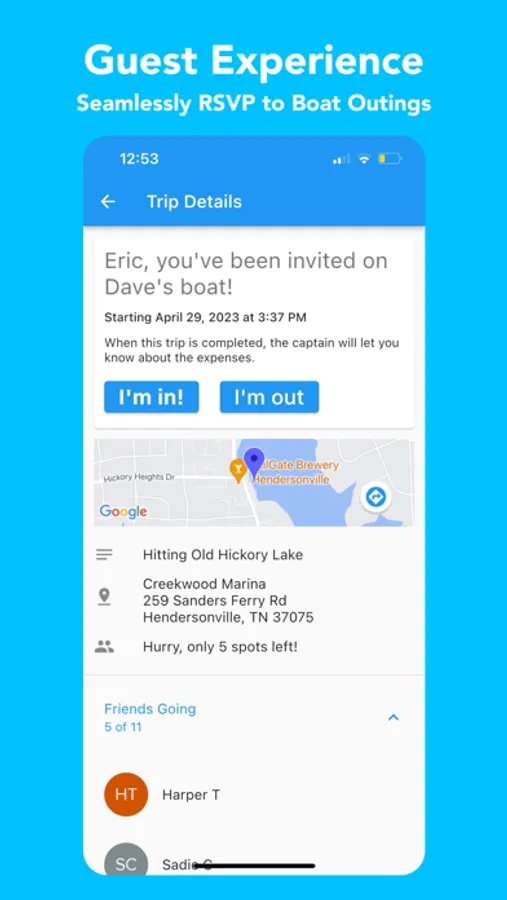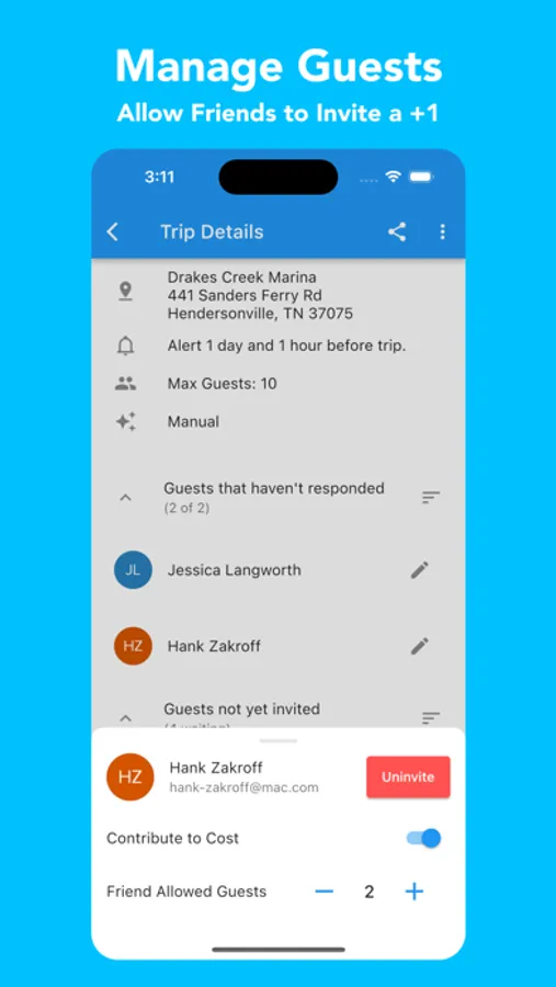 Quickly and easily invite friends to join you on your boating adventure directly from your contact list. Boat with Friends will help you manage your guests, tracking who's in and who's out.