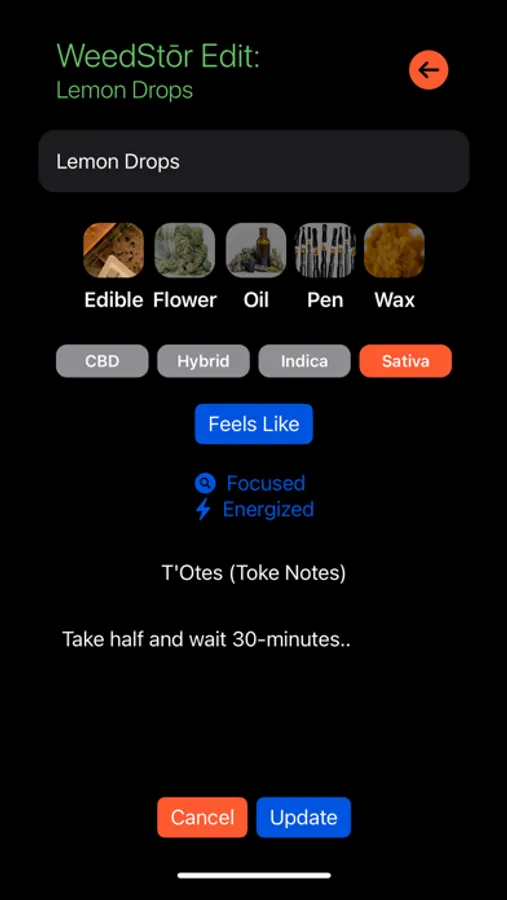 WeedStōr was born from necessity. With so many different choices of Cannabis, and just as many ways to enjoy it, we set out to make it easier for you to track every toke so that every hit hits the right note. With just a few taps you can save usage notes, mark favorites, and tag the mood so you always grab the right ganja for every occasion.