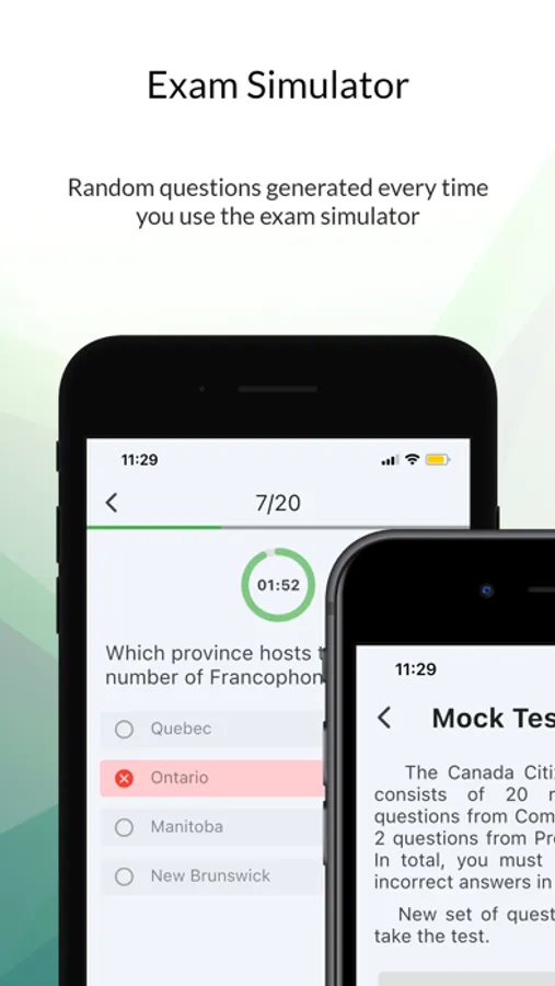 Exam Simulator: Experience the real Canadian Citizenship Test with random questions generated each time.