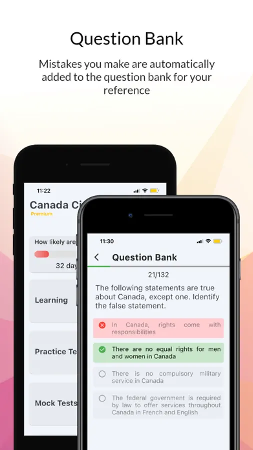 Practice Tests: 700+ exam-like questions based on the official Canadian citizenship study guide. Instant feedback included.