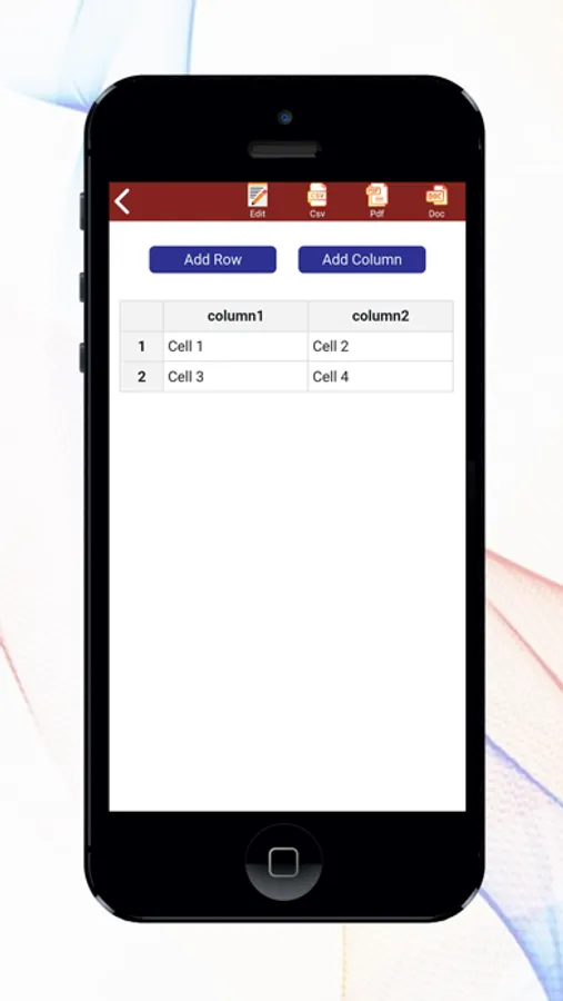 This app is used to make your CSV file in the easiest way which means simple tools to make your columns and rows, then just click on the newly created cell and type your own texts.
