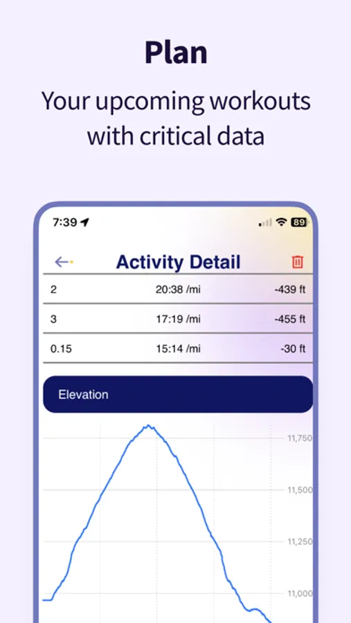 **Split Analysis & Elevation Graph** Break down your performance with split analysis and understand your elevation gains over time through an insightful graph.