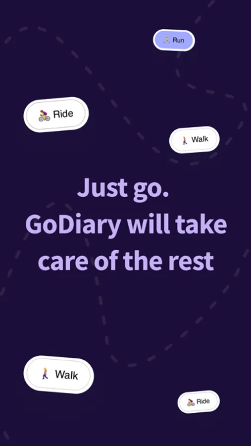 Welcome to GoDiary, your ultimate fitness companion. Unlike other fitness apps, GoDiary doesn't require manual start and stop for activities. Just take your phone along on your workout, and it will automatically detect your Runs, Rides, and Walks. Skeptical? Try it out and prepare to be impressed!