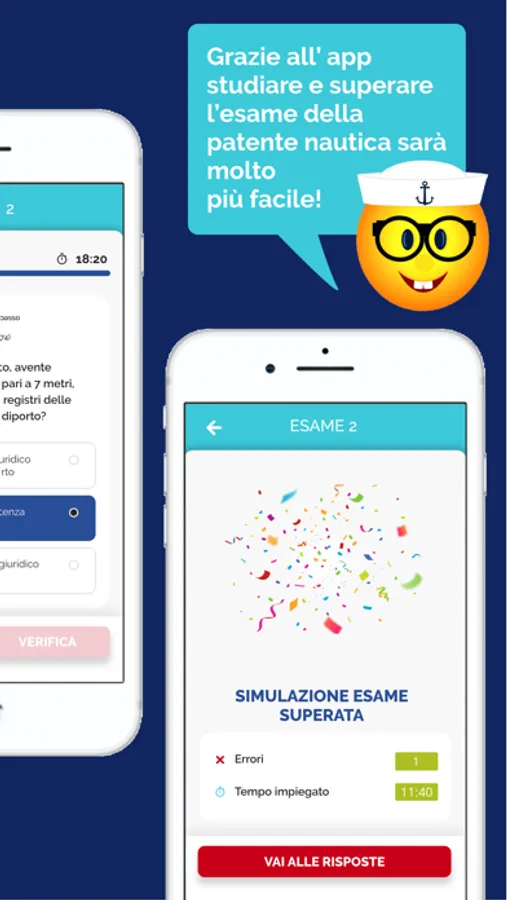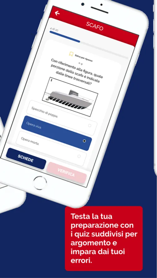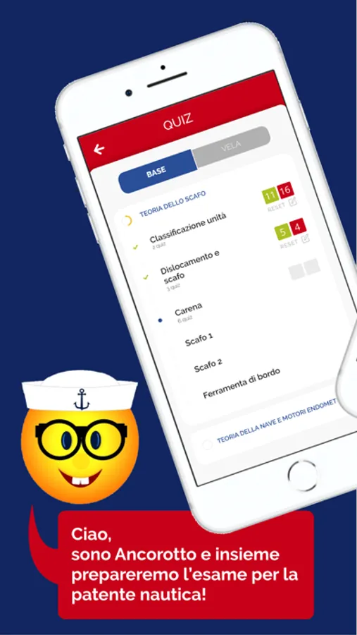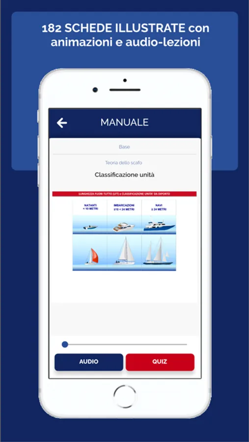 Questa App comprende tutti i 1435 quiz base e i 250 quiz vela aggiornati al nuovo sistema d’esame. Il punto di forza di questa App è la suddivisione degli argomenti ministeriali in 183 schede didattiche con immagini, schemi e animazioni accompagnate da altrettante audiolezioni. Questo sistema ti consente di memorizzare facilmente e velocemente tutti i concetti necessari per la risoluzione dei quiz.