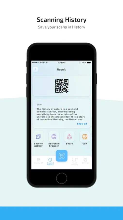 - Ability to save codes to the user's gallery.