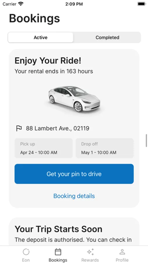 Eon's user-friendly interface empowers you to take control of your rental journey. From choosing the ideal vehicle to managing and unlocking your rental, everything is available right at your fingertips.