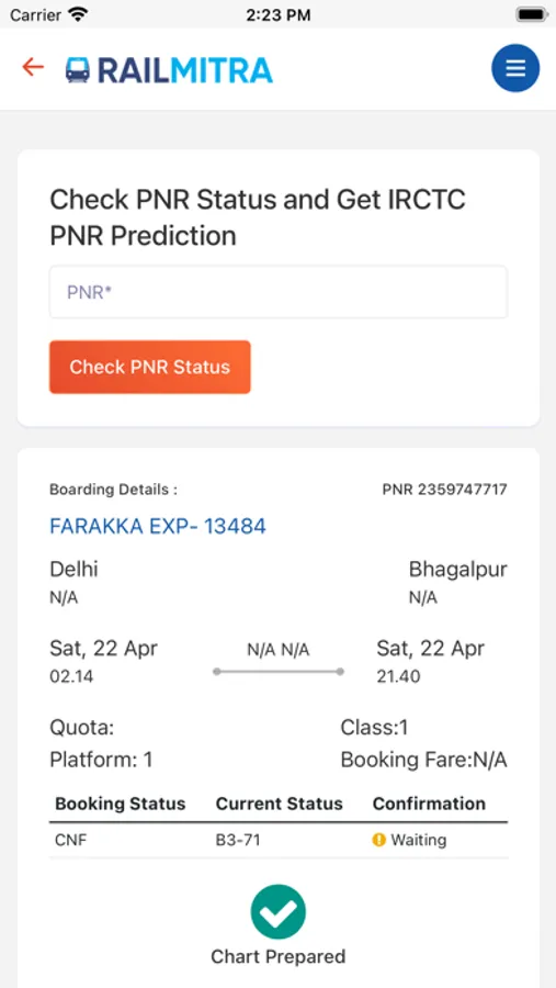 RailMitra is the best app for all train-related enquiries, such as checking PNR status and NTES live train running status to know where is my train.