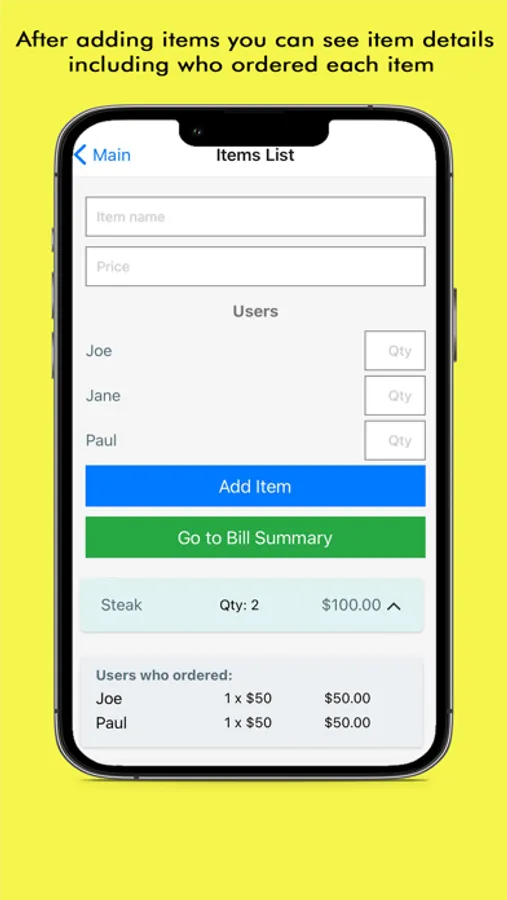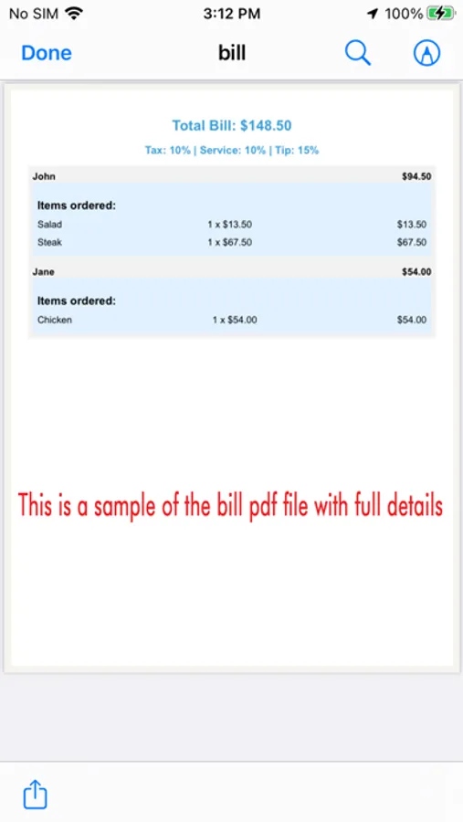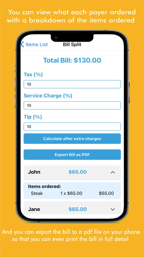 The user interface is simple and easy to navigate, so you can quickly and efficiently input all of the necessary information, take a snapshot of your bill, and generate the comprehensive PDF. The app provides a clear and concise summary of each user's order, so you can see exactly what each person ordered and how much they owe.