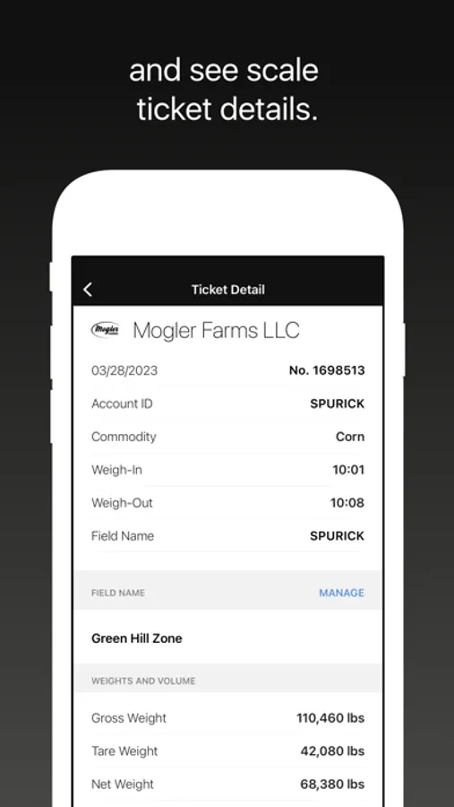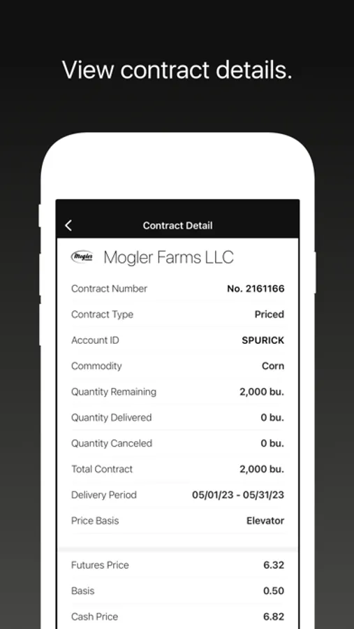 The Mogler Farms app is an essential mobile solution that connects your operation to your grain facility, providing real-time, actionable information to help you manage and grow your business.