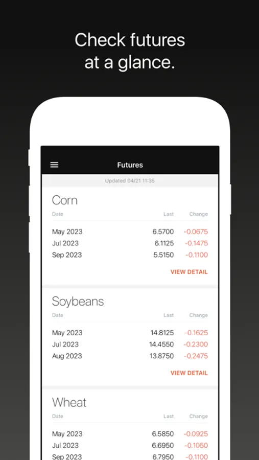 Futures: See Grains, Feed, Livestock, and Ethanol futures listed in order of your preference