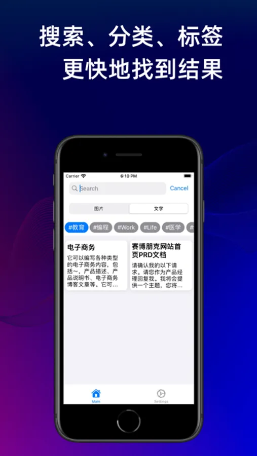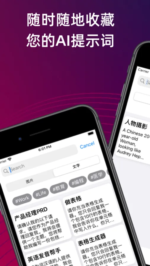 【随手记录】:轻量的App启动速度在0.5秒以内,可以快速随手记录您喜爱的提示词