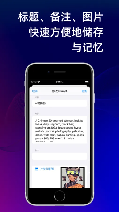 PromptBox提示词盒子是一款专门用来储存您的各种AI提示词的工具,轻量小巧,可以便捷地储存任何图片或是文字提示词,并且支持导入其他来源的任何提示词。同时,它也支持iCloud云同步,在任何设备的PromptBox 应用之间同步您的提示词。