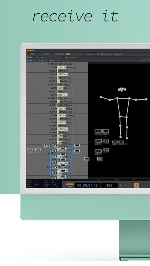 An application capturing body tracking data and sending it to other devices using OSC, a protocol for networking sound synthesizers, computers, and other multimedia devices, to create multimedia content.