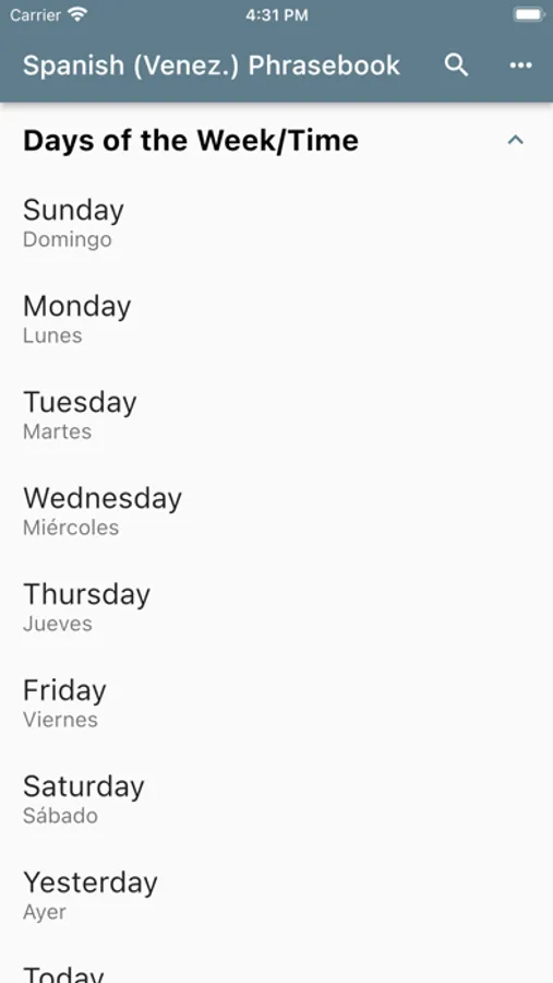 Using this app, you can select an English phrase and view its translation and how to pronounce it in Spanish.