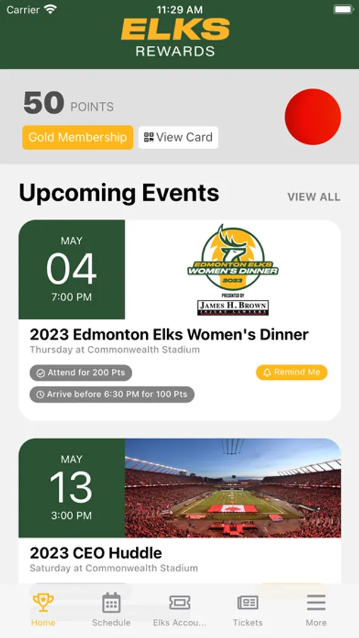 The Elks Rewards app is also your new home to access your Elks Account Manager, allowing you to get your mobile tickets to the game. You can also access GoElks.com for all the Green and Gold news you need to stay in the know! And don’t forget to check out exclusive Elks Rewards member perks from select Elks partners.