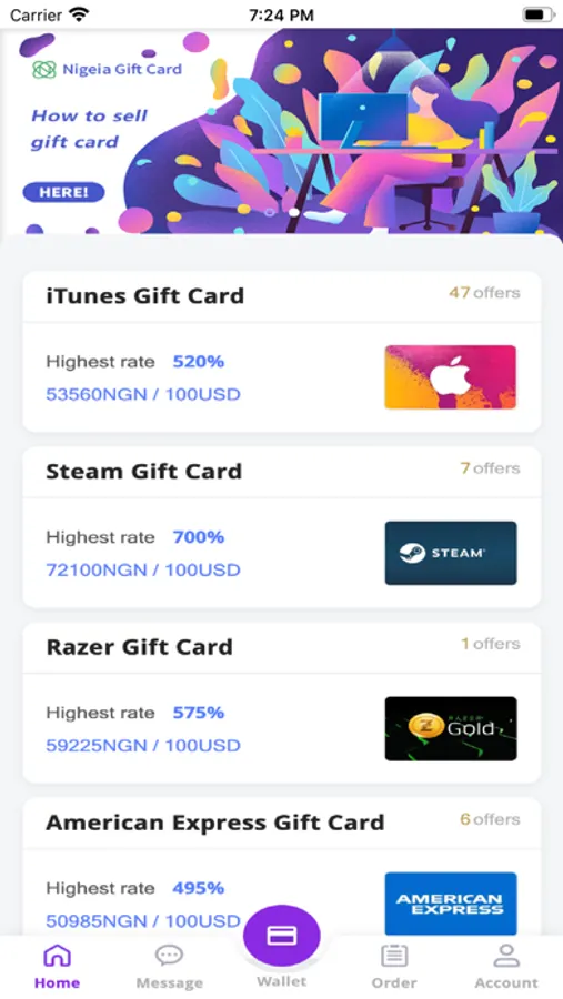 An awesome place to trade gift card.Buys can redeem gift cards on NigeriaGiftCard. Gift cards include: America Express, OneVanilla Gift card, Sephora Gift Card, Nordstrom ,Foot Locker Gift Card ,Macy's Gift Card ,Nike Gift Card, Amazon Gift Card ,Steam Gift Card, Razer Gift Card, Walmart Gift Card ,Itunes Gift Card, Google Gift Card ,Ebay Gift Card ,Mastercard Gift Card, Xbox card and so on. We are very pleased to gain the trust of our customers.
