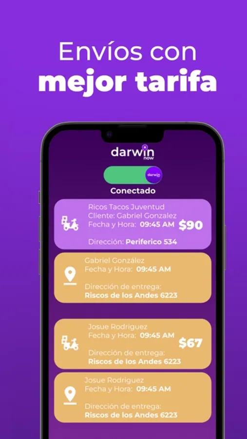 Nuestra visión se centra en ti, el repartidor. Te apoyamos en cada paso de tu camino, con todas las herramientas que necesites para brindar un servicio excepcional. Nos aseguraremos que tus esfuerzos sean recompensados de manera justa. Con Darwin Delivery, puedes ganar hasta un 30% más que otras APPS. ¡Sí, has leído bien! Trabajamos arduamente para garantizar que recibas la compensación que mereces.