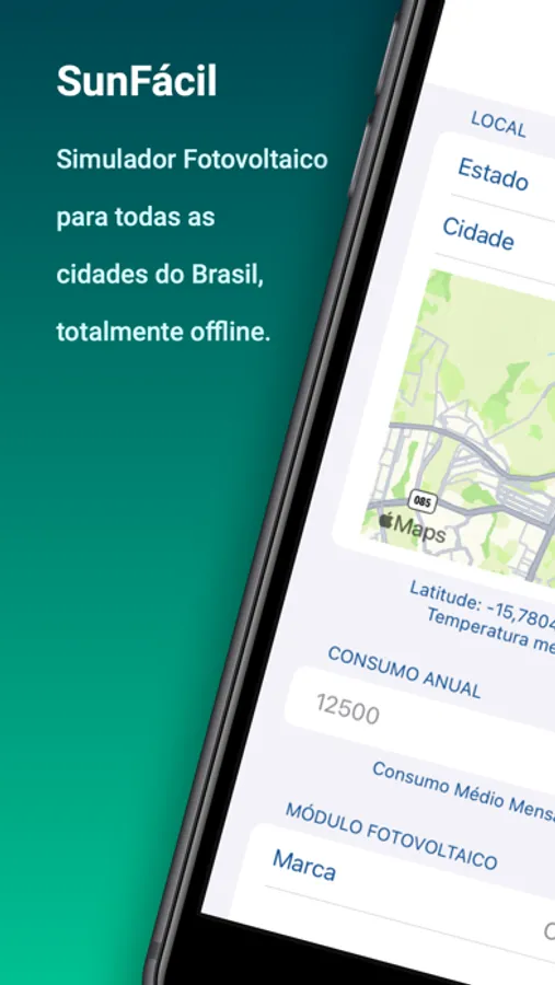 Sunfácil é um simulador para sistemas fotovoltaicos para todas as cidades do Brasil. Os dados de irradiação de cada cidade foram obtidos a partir do Cresesb.