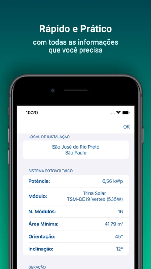Dentro dos mesmo parâmetros de simulação, pode-se comparar os resultados com o PVSol.