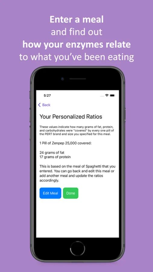 PERT Pilot then shows you the relationship between how much PERT you have been taking and what you are eating, supporting you as you fine-tune your enzyme intake. PERT Pilot also enables you to share what's working - and what might not be working - with your healthcare provider.