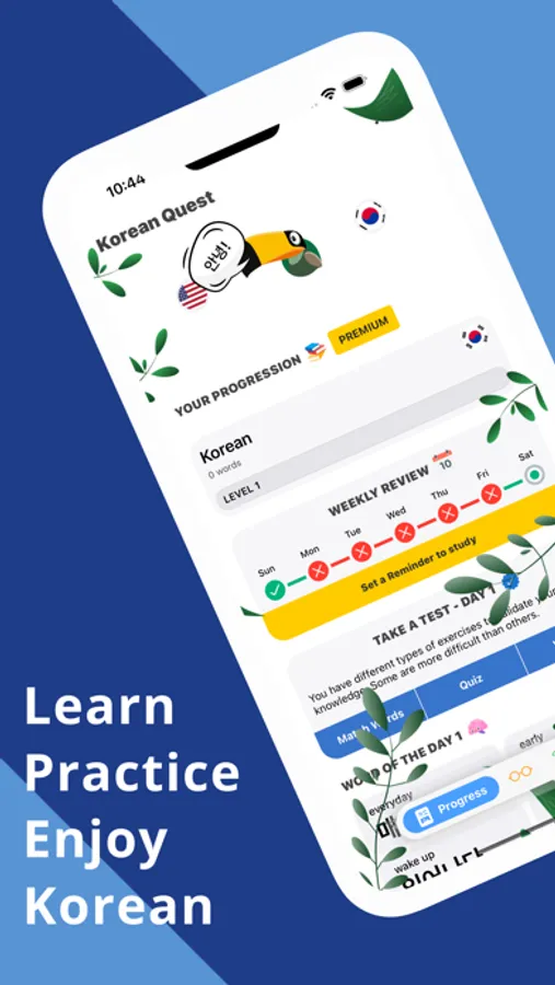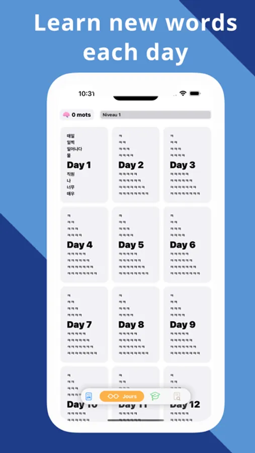 With Korean Quest, you can learn 10 new Korean words per day. This is the best way to improve your Korean vocabulary really fast. And because we have a lot of different exercices, your journey to the new language is going to be fun.