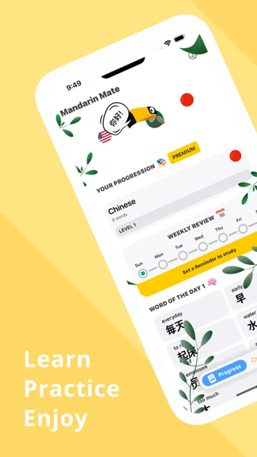 With Mandarin Mate- Learn Chinese, you can learn 10 new Chinese words per day. This is the best way to improve your Chinese vocabulary really fast. And because we have a lot of different exercices, your journey to the new language is going to be fun.
