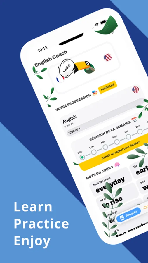 With English Coach - Learning App, you can learn 10 new English words per day. This is the best way to improve your English vocabulary really fast. And because we have a lot of different exercices, your journey to the new language is going to be fun.