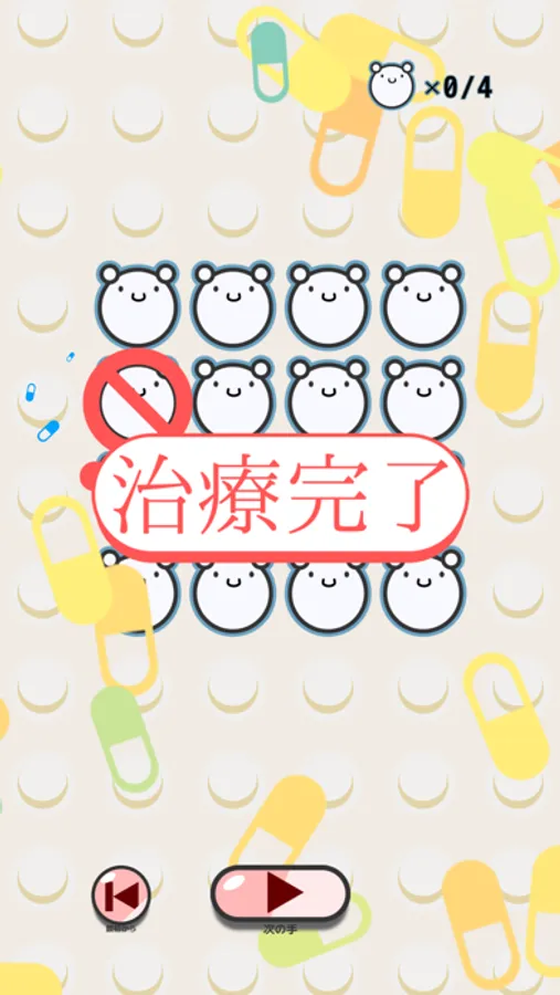 患者さんの体に巣食う黒い「悪玉」を白い「善玉」で塗りつぶすように退治し、治療していくパズルゲームです。