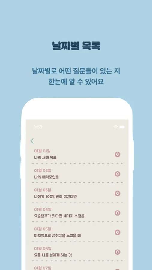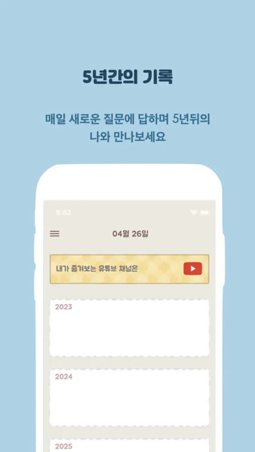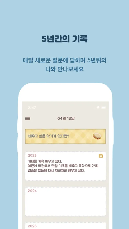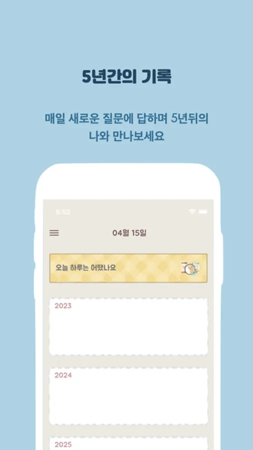 매일 새로운 질문에 답하며 5년뒤의 나와 만나보세요