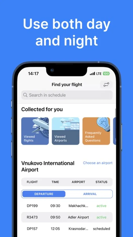 Our flight information app is your ultimate travel companion. With real-time flight updates, airport information, and flight schedules, you can stay informed and plan your travel with ease. Our app features a flight tracker, allowing you to monitor flight status. You can search for airline tickets and compare airfare deals all within the app. Whether you're a frequent flyer or planning your next adventure, our app has everything you need to make your travel experience smooth and stress-free. Download now and take off on your next journey.