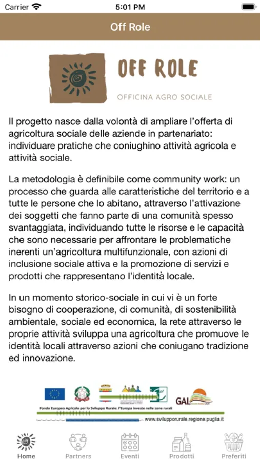 Il progetto Off Role - Officina Agrosociale, finanziato dal Gal Daunia Rurale 2020, nasce dalla volontà di ampliare l’offerta di agricoltura sociale delle aziende in partenariato: individuare pratiche che coniughino attività agricola e attività sociale.