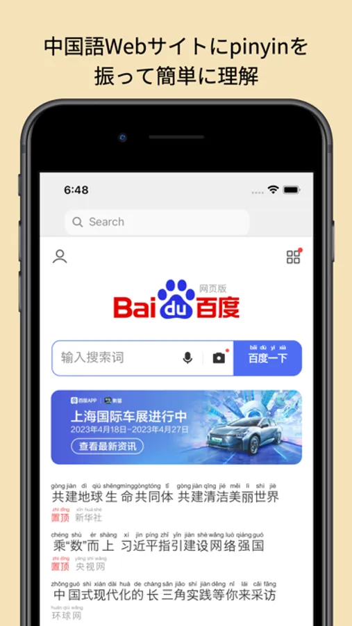 中国語のWebサイトをより簡単に理解しましょう!当アプリは、中国語のwebサイトにpinyinを自動で振り、中国語の文章を読む際の手助けになります。さらに、辞書機能を使って単語の意味を確認できます。初心者から上級者まで、誰でも簡単に使えます。今すぐダウンロード!