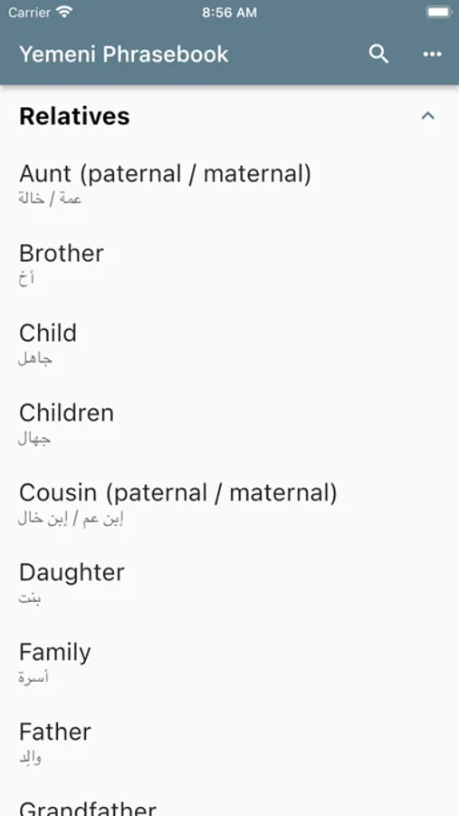 Using this app, you can select an English phrase and view its translation and how to pronounce it in Yemeni.