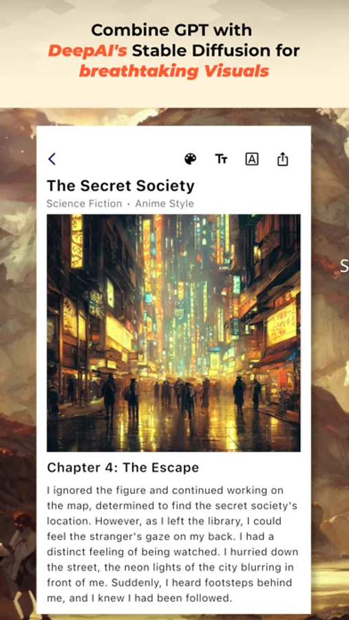 Stories AI is an AI powered comic creator. Discover your inner comic book artist. Each of the 10 chapters is a unique masterpiece brought to life by DeepAI's Stable Diffusion. With the app's diverse art styles, your creativity knows no bounds.