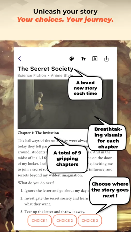 Embark on a journey that's uniquely yours. Every story presents endless possibilities as you choose your own path and watch the story unfold. Explore the 9 captivating stories added to your library and experience something truly new.