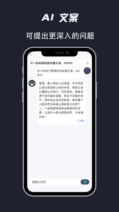 Chat AI是一款利用人工智能帮助用户完成各种任务的应用程序。你只需要简单的给它发送一条信息,它就会用人类能看懂的方式回复你。