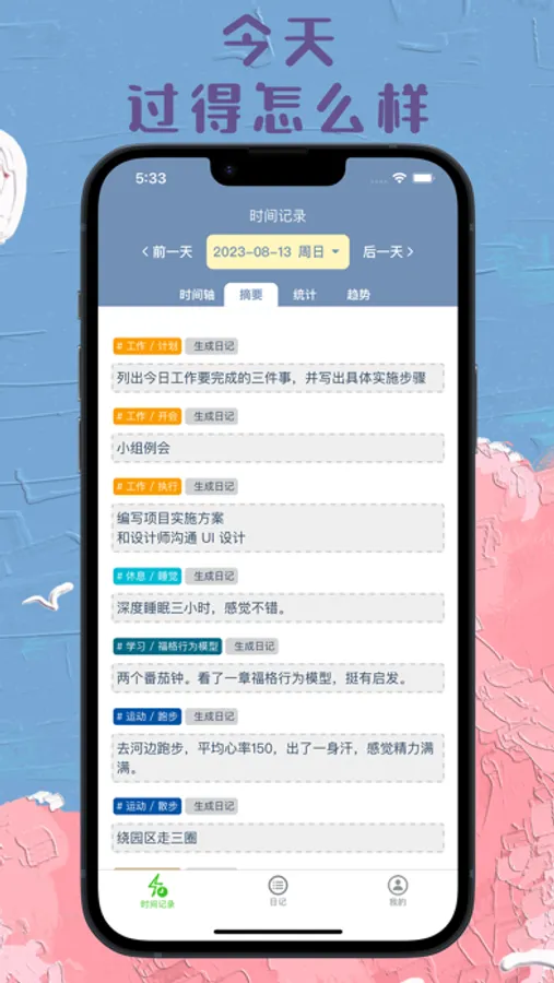 7. 每日时间记录备注自动按分类汇总成日记,帮你的日记开个头
