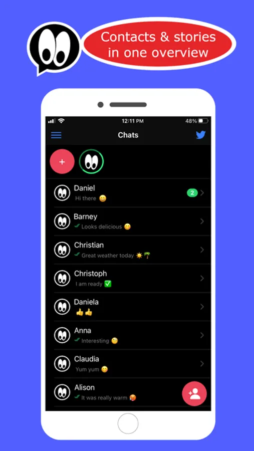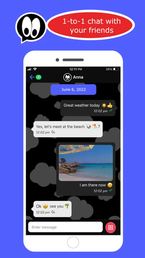 MIME is a messenger for smart phones. This messenger uses your internet connection to send and receive messages. You can chat with friends and send them photos, voice messages or videos. You can chat with your friends directly in one-to-one chats. You can also share stories with all friends you have added to your MIME contacts list.