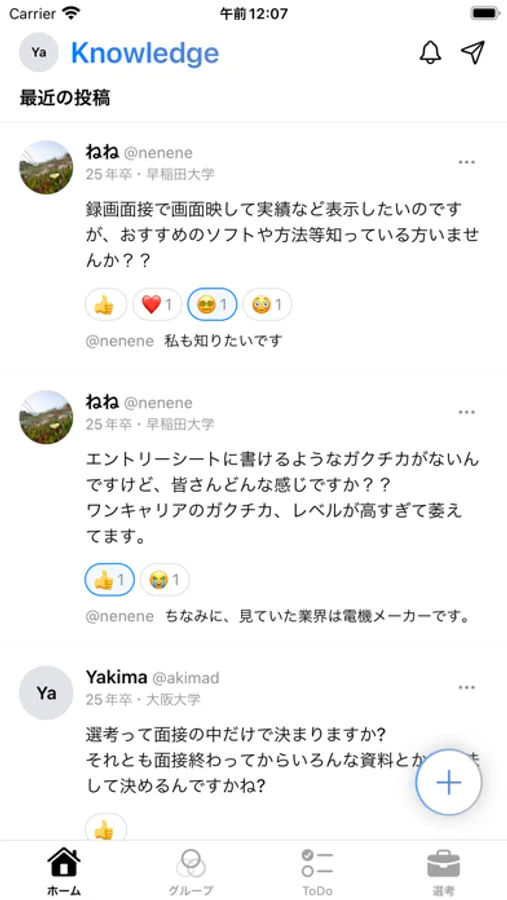 Knowledge(ナレッジ)は匿名で参加できる就活生のためのSNSです。