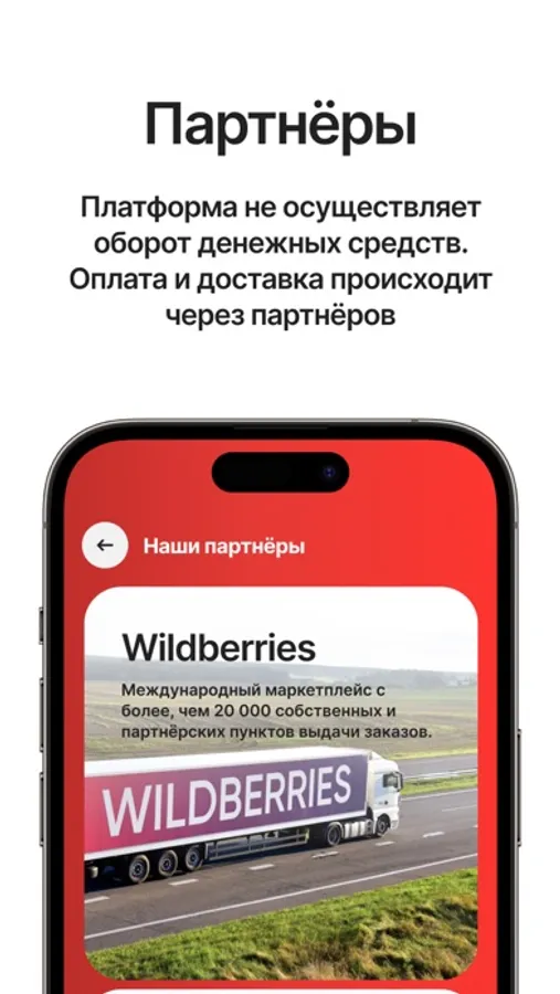 ⁃ Платформа не осуществляет оборот денежных средств. Оплата и доставка происходит через наших партнёров — крупнейшие в России маркетплейсы: Вайлдберриз и Озон;