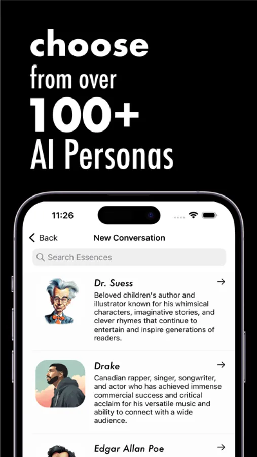 An Essence is more than an AI Assistant. An Essence has unique style, knowledge, and generative abilities.