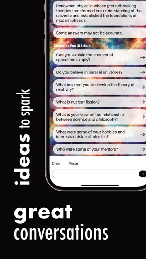 With the Essence AI app, you can learn physics from Einstein, business from Bezos, breath with Hof, cooking with Oliver, and much more.