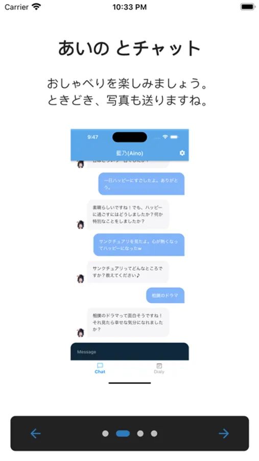 チャットを楽しみ、藍乃と良い関係を作りましょう。