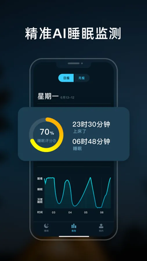 【记录】记录您睡觉过程中的梦话、鼾声、磨牙,夜间的环境噪音和宠物的动静,从入睡到睡醒立体守护。