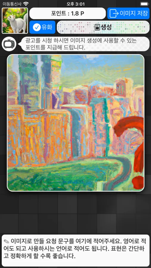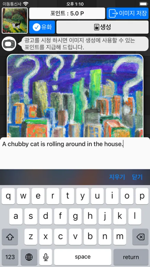 - 5.0 Point is paid when you watch the TV-shaped reward ad button.