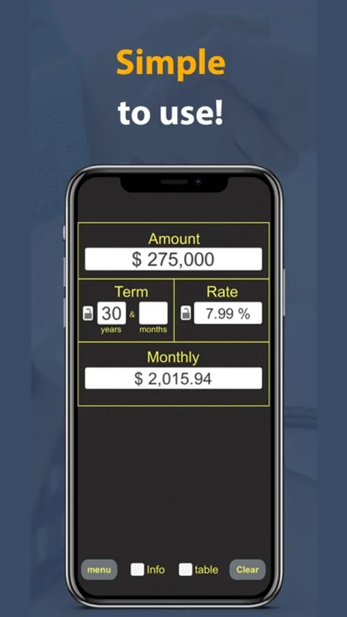 1. Easy-to-Use Interface: Our app is designed with a user-friendly interface, so you can easily input your loan amount, interest rate, and loan term to get an accurate calculation of your monthly payment.