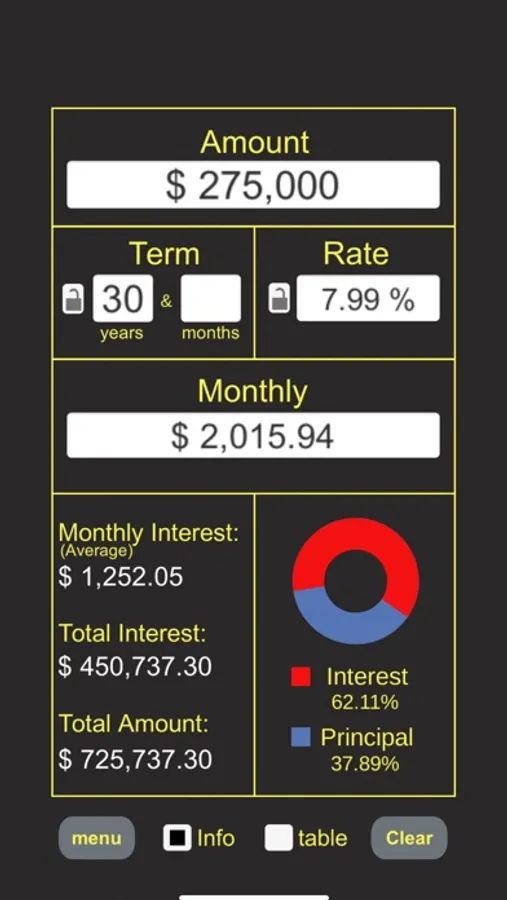 2. Comprehensive Results: Our app provides a detailed breakdown of your loan payment, including the amount of interest you'll pay over the life of the loan. You'll also see how much of each payment goes toward principal and interest.
