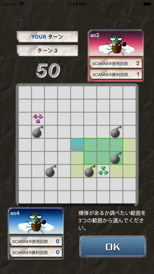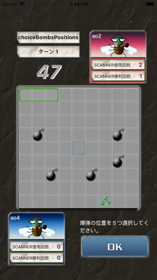 9×9マスの盤上のどこに爆弾を置いておくかがカギだ