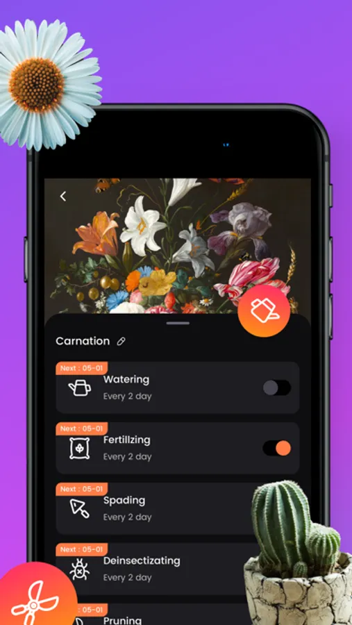 - Help take care of your plants by creating daily notifications for caring for your plants.